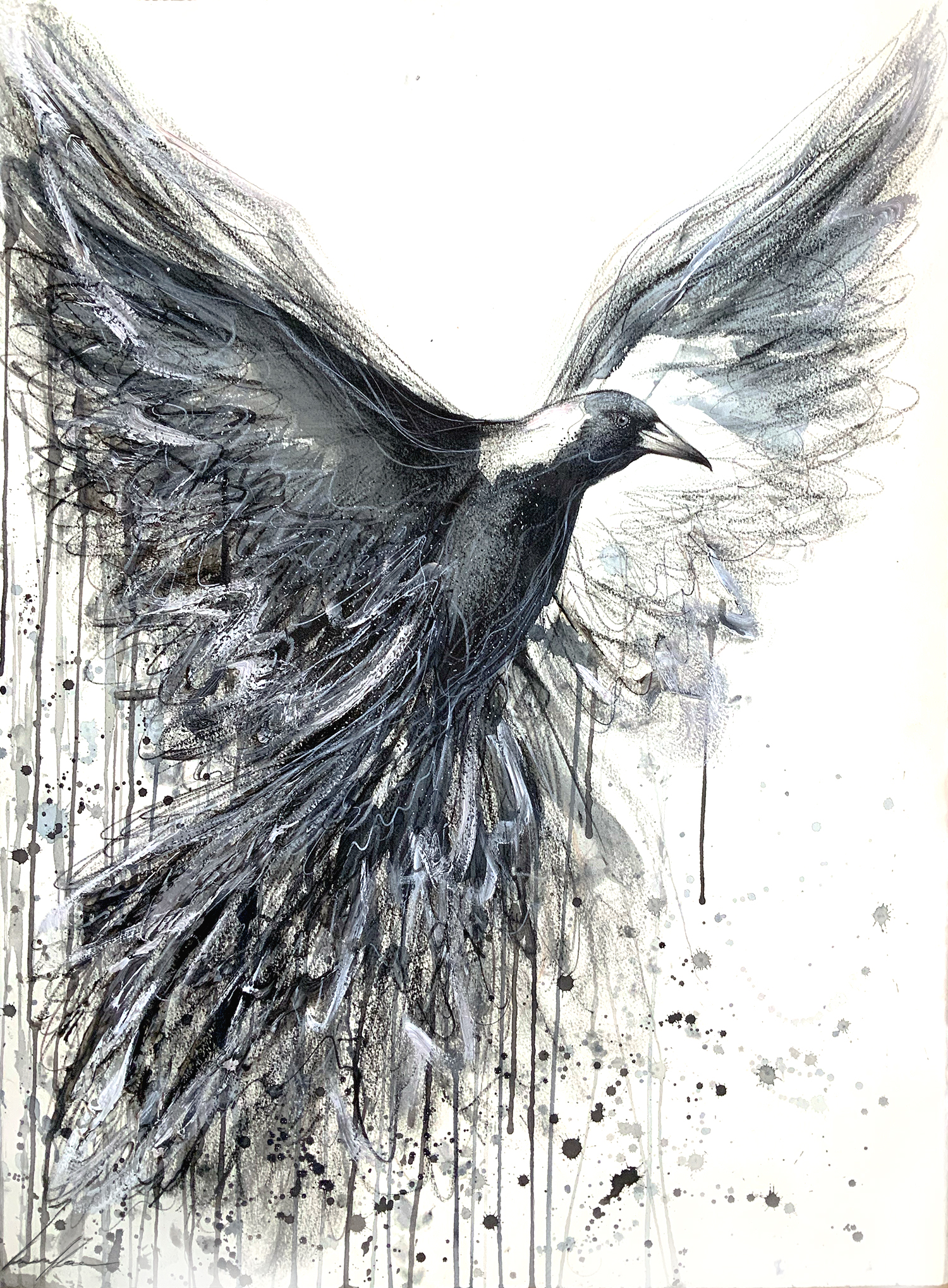 Magpie Spirit Awakening, In Flight (Original Art on paper 50.8 x 76cm)