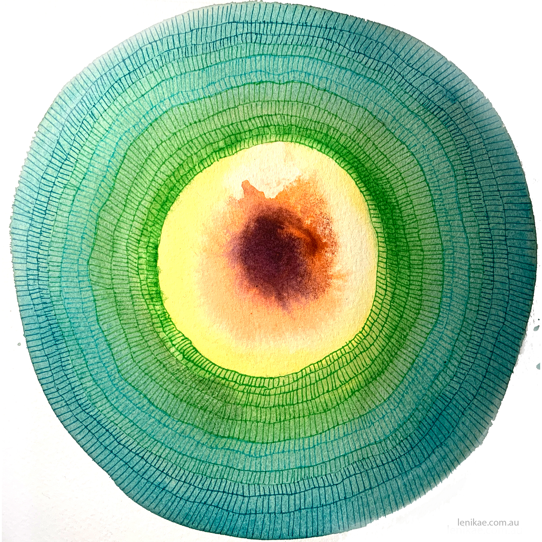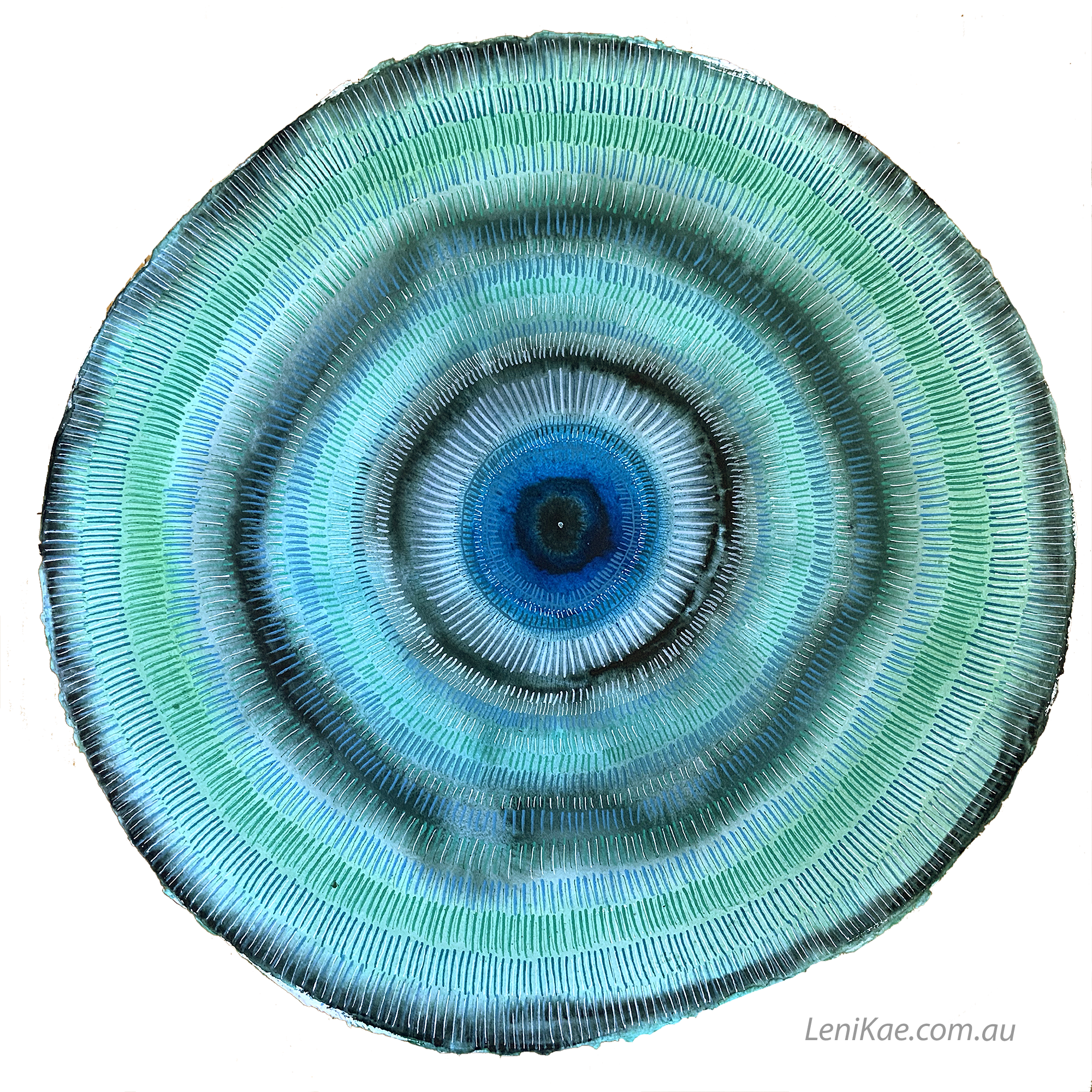 Aware Mandala – Aqua / Yellow (28 x 28cm with mount)